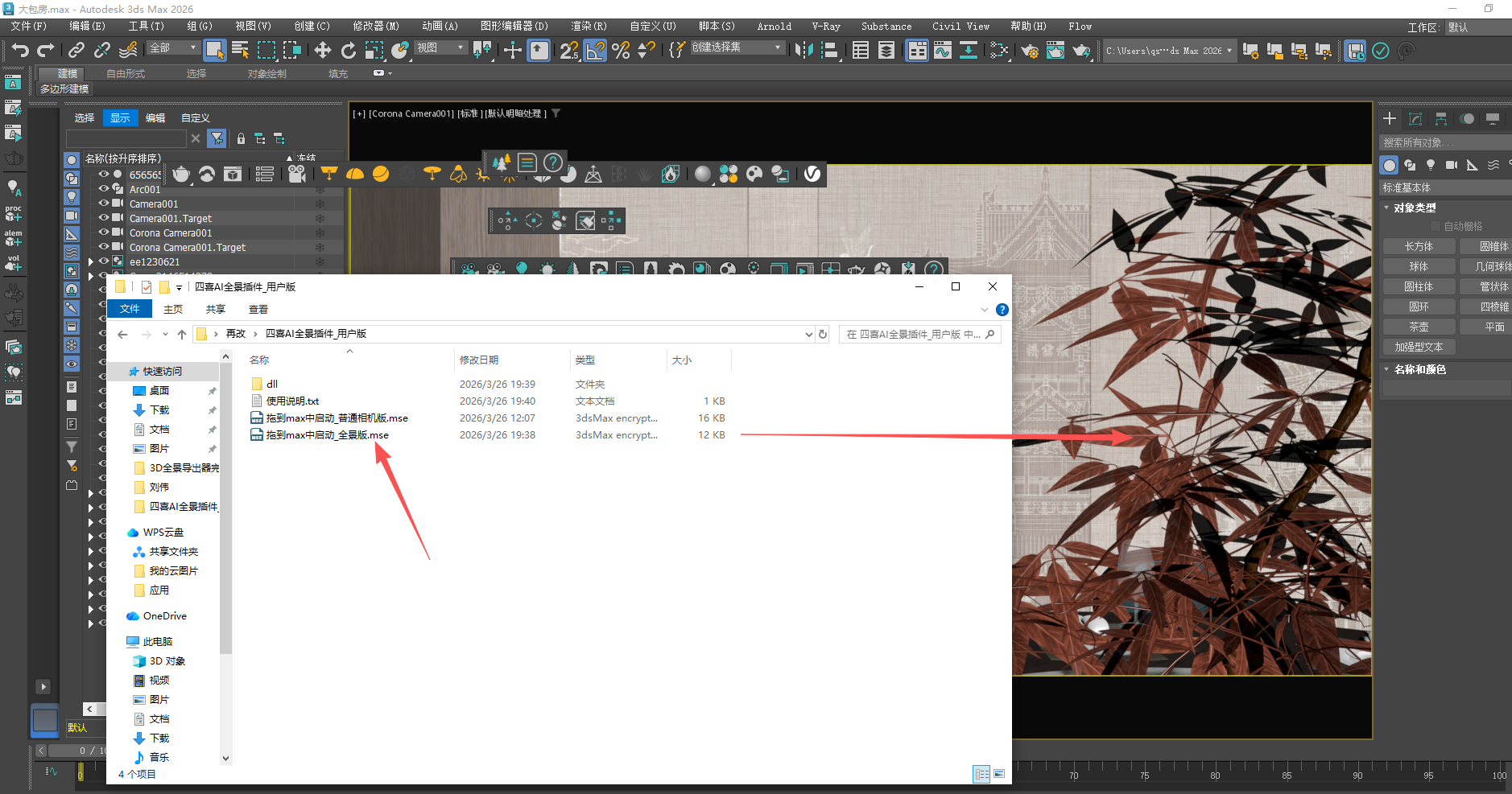 1.解压后找到 拖动到max中启动_全景版.mse 将其拖动到预览视口