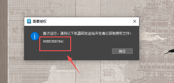 2.首次启动会显示需要授权 请将截图发送给四喜获取授权文件
