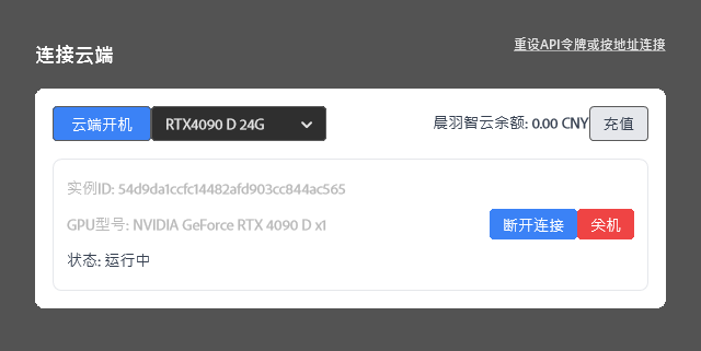 【云端关机】:结束使用必须!点击!云端关机!才会停止使用计费,否则即便您没使用也会一直扣费。